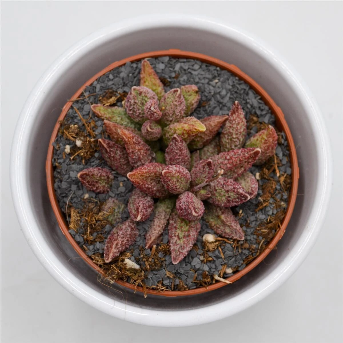 Adromischus marianiae var. Antidorcatum ist grün bis rot. Die Blüte ist zartrosa bis lila. Du erhältst eine Pflanze der Topfgröße 8,5cm, mit Wuchshöhe von etwa 6cm. Die erreichbare Wuchshöhe liegt bei 10cm bis 15cm.