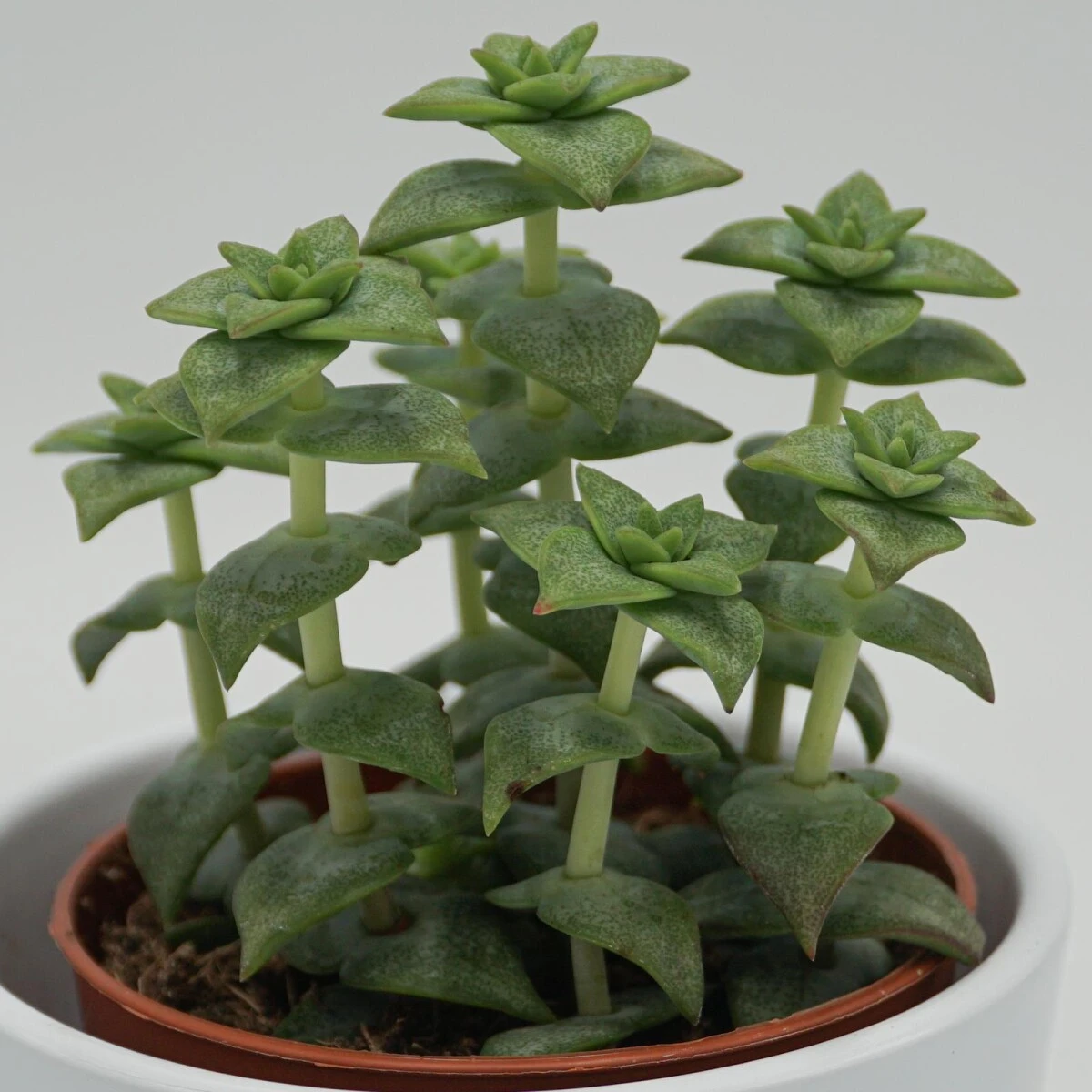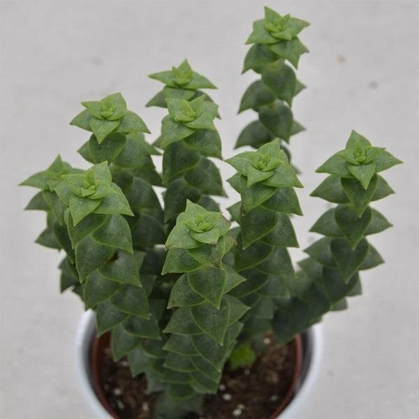 Crassula perforata ist grün. Die Blüte ist weiß bis gelb. Sie bildet sich innerhalb der Blütezeit von September bis November. Du erhältst eine Pflanze der Topfgröße 8,5cm, mit Gesamthöhe von Topf und Pflanze von etwa 12cm. Die erreichbare Wuchshöhe liegt bei 30cm bis 60cm.